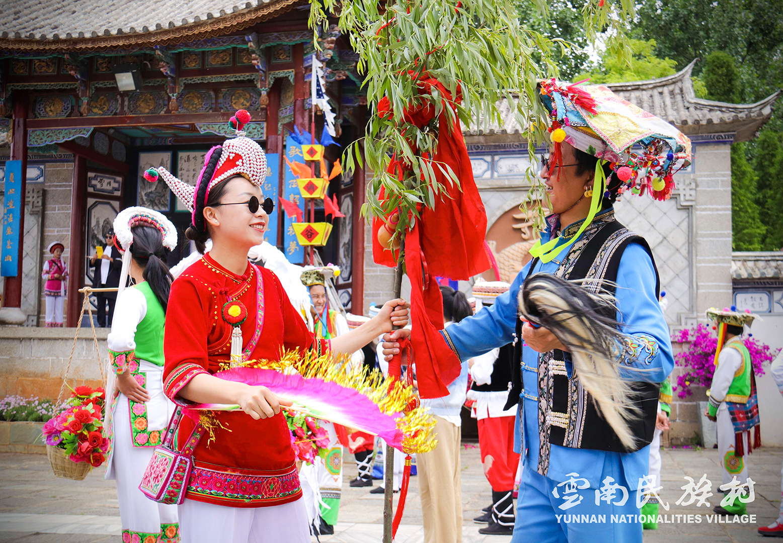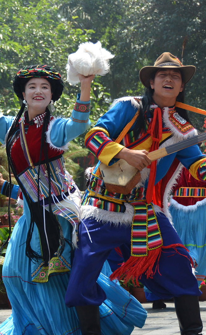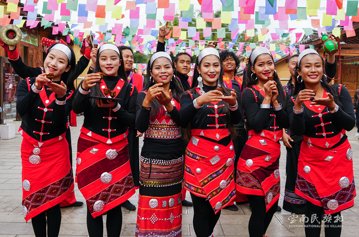彝族在云南境內(nèi)約471萬人,是省內(nèi)人口最多、分布最廣的少數(shù)民族,主要聚居在金沙江、元江流域和哀牢山、無量山腹地。彝族是一個能歌善舞的民族,民間打歌、跳樂之風(fēng)盛行,大三弦、跌腳舞久負盛名。火把節(jié)是彝族最具特色的民族節(jié)日。彝族村占地50余畝,三虎浮雕墻與虎頭內(nèi)祖師形象表現(xiàn)了彝族虎鷹文化。太陽歷廣場圖騰柱上有太陽、虎、火和八卦圖形象,周圍環(huán)繞著10個朝向不同的月球造型,外圓周有12生肖石雕。依山而建的“...